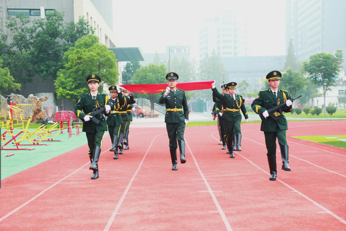 典礼在全场师生齐唱庄严雄壮的国歌声中拉开序幕。