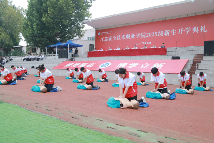 应急救护技能展示为新生们带来了一场生动实用的急救知识盛宴,希望同学们认真学习这些技能,成为“校园安全守护者”的一员。