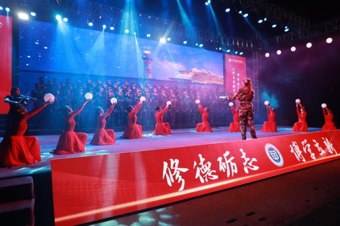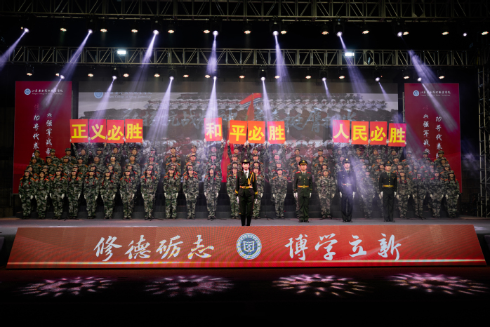 秋风送爽,军歌嘹亮。为深入学习贯彻习近平总书记在纪念中国人民抗日战争暨世界反法西斯战争胜利80周年大会上的重要讲话精神,庆祝中华人民共和国成立76周年,激励青年学生筑牢信仰之基、涵养家国情怀,矢志不渝听党话、跟党走,10月20日,由校团委、马克思主义学院、校关工委联合主办的“歌声里的思政课”——第六届校园文化艺术节开幕式暨2025级新生军训合唱比赛在贾汪校区隆重举行。党委副书记成伯君,党委委员薛莲、李志浩,团委、学工处和各二级学院相关负责同志,马克思主义学院全体教师、新生辅导员、承训部队教官以及2025级新生参加活动。