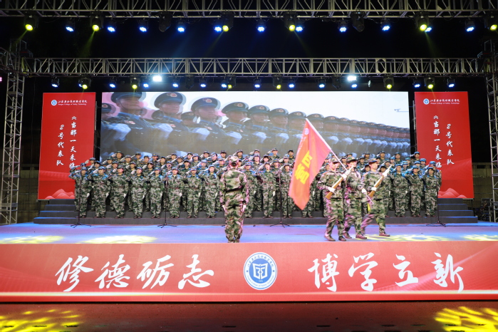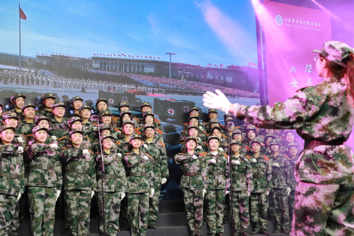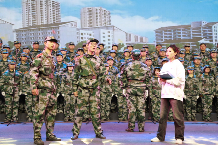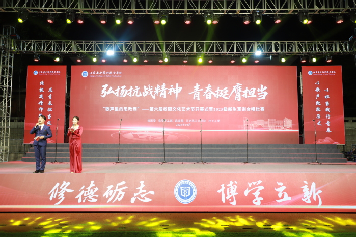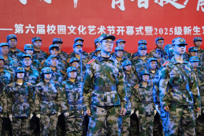 秋风送爽,军歌嘹亮。为深入学习贯彻习近平总书记在纪念中国人民抗日战争暨世界反法西斯战争胜利80周年大会上的重要讲话精神,庆祝中华人民共和国成立76周年,激励青年学生筑牢信仰之基、涵养家国情怀,矢志不渝听党话、跟党走,10月20日,由校团委、马克思主义学院、校关工委联合主办的“歌声里的思政课”——第六届校园文化艺术节开幕式暨2025级新生军训合唱比赛在贾汪校区隆重举行。党委副书记成伯君,党委委员薛莲、李志浩,团委、学工处和各二级学院相关负责同志,马克思主义学院全体教师、新生辅导员、承训部队教官以及2025级新生参加活动。