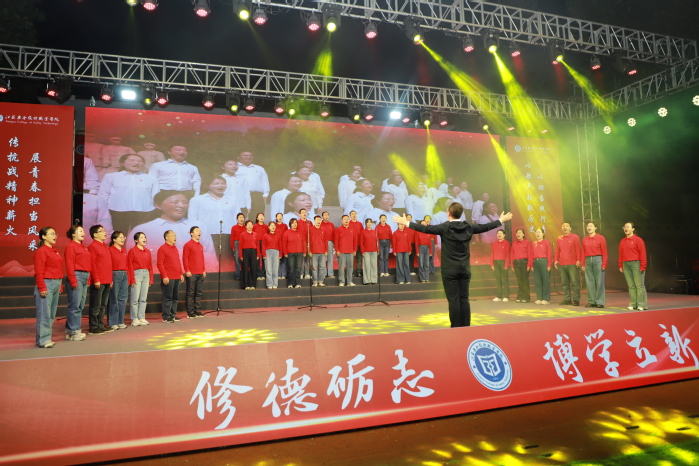 比赛最后,由马克思主义学院全体教师演唱的《党旗更鲜艳》点燃全场热情,将活动推向新的高潮。