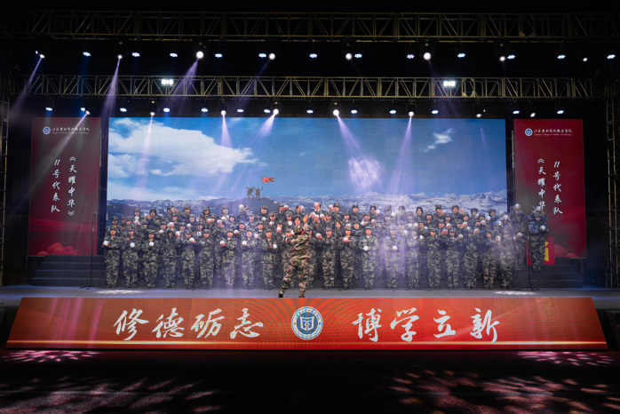 比赛现场,各参赛连队迈着整齐步伐依次登场,新生们身着笔挺的军训服,目光坚定,精神饱满,展现出新时代大学生昂扬向上的精神风貌。来自五个二级学院的十二支代表队为全场观众带来了二十四首曲目,《歌唱祖国》、《祖国不会忘记》等歌曲将“家国情怀”融入歌声,引领青年在歌声中坚定理想信念,抒发对祖国的无限深情与崇高敬意;《团结就是力量》、《学习雷锋好榜样》节奏铿锵、精神昂扬,号召青年们在集体中凝聚力量,在奉献中砥砺前行;《保卫黄河》、《强军战歌》唱出了同学们的豪迈气势与强军报国的坚定决心,展现了新时代青年的血性担当;《中国军魂》、《冲锋号》气势如虹,听党指挥、能打胜仗,让全场观众感受到同学们的坚定信念和不变决心;《血染的风采》、《女兵谣》饱含深情,以悠扬的歌声将革命岁月与家国故事娓娓道来,传递出对历史的铭记与对先烈的缅怀;《没有共产党就没有新中国》、《复兴的力量》 表达出了新时代青年怀揣梦想、坚定信念、紧跟党走、追逐未来的精神风貌;《灯火里的中国》、《天耀中华》唱出了身处新时代的新青年对祖国的美好祝愿,以及不断谱写崭新诗篇的使命与担当。