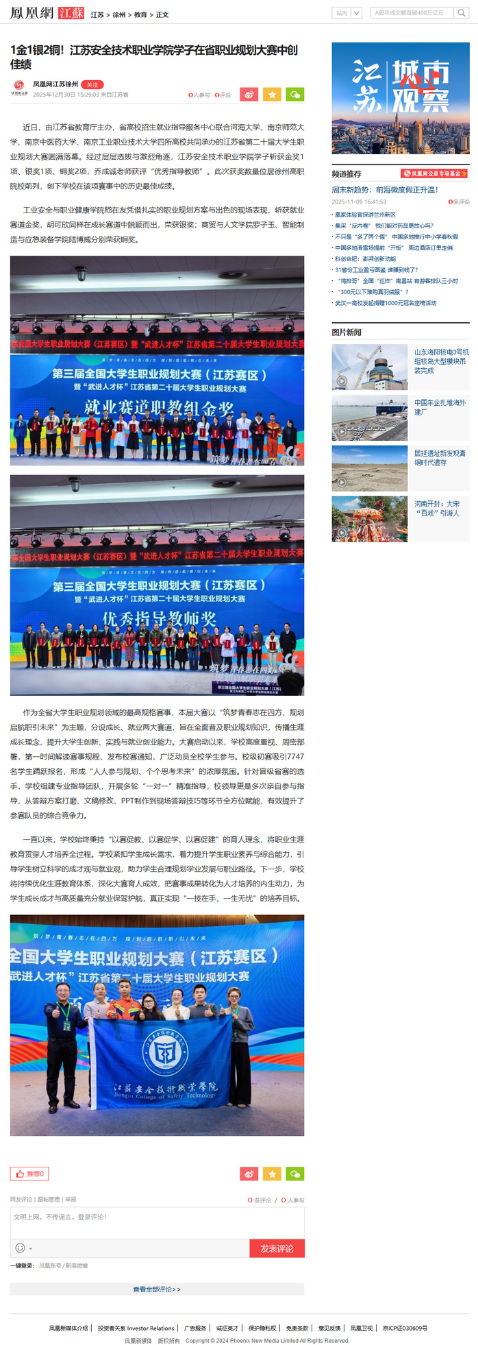 凤凰网江苏:1金1银2铜!江苏安全技术职业学院学子在省职业规划大赛中创佳绩