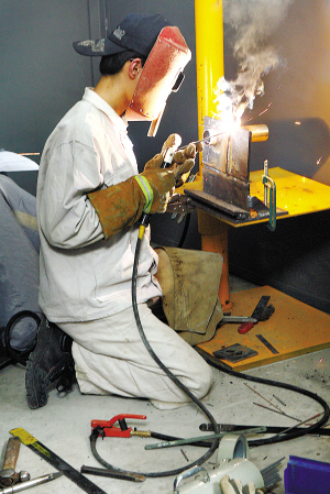 焊工项目总裁判长蒋国颂介绍道:“操作总共历时3个半小时,比赛分理论跟操作两大项,各占20%、80%。比赛综合考察选手的装备、焊接、机械制图等知识与技能。”