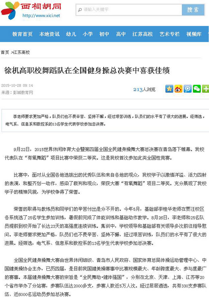 【西祠胡同】徐机高职校舞蹈队在全国健身操总决赛中喜获佳绩