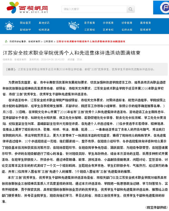 【西祠胡同】江苏安全技术职业学院优秀个人和先进集体评选活动圆满结束