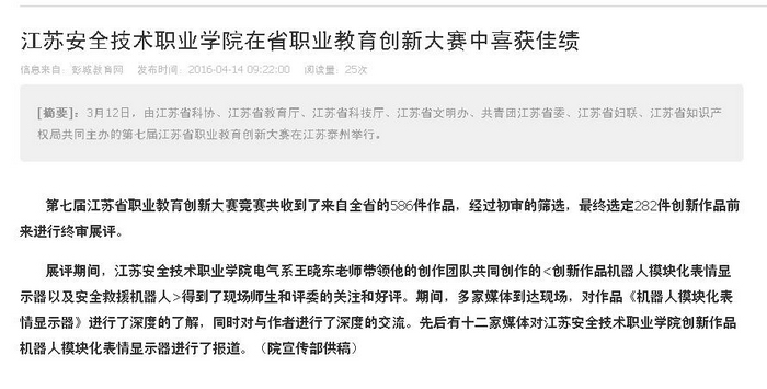 【西祠胡同】江苏安全技术职业学院在省职业教育创新大赛中喜获佳绩