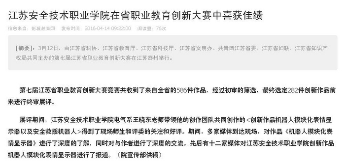【西祠胡同】江苏安全技术职业学院在省职业教育创新大赛中喜获佳绩