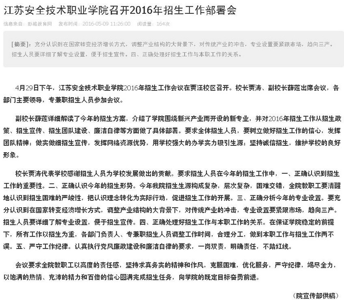 【西祠胡同】江苏安全技术职业学院召开2016年招生工作部署会