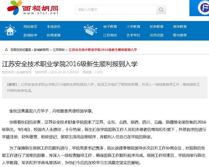 【西祠胡同】江苏安全技术职业学院2016级新生顺利报到入学