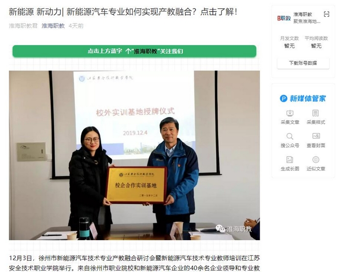 淮海职教:新能源 新动力| 新能源汽车专业如何实现产教融合?点击了解!