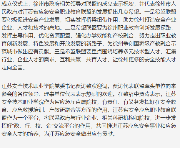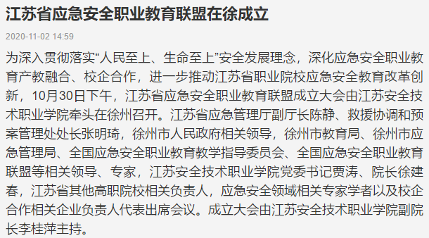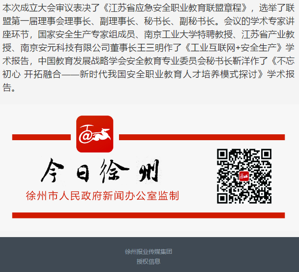 今日徐州:江苏省应急安全职业教育联盟在徐成立