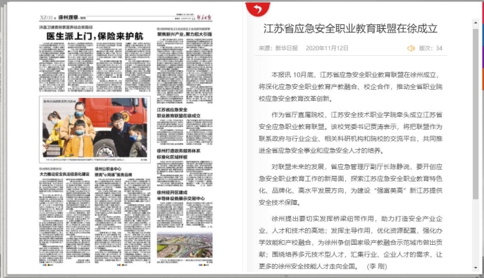 新华日报:江苏省应急安全职业教育联盟在徐成立