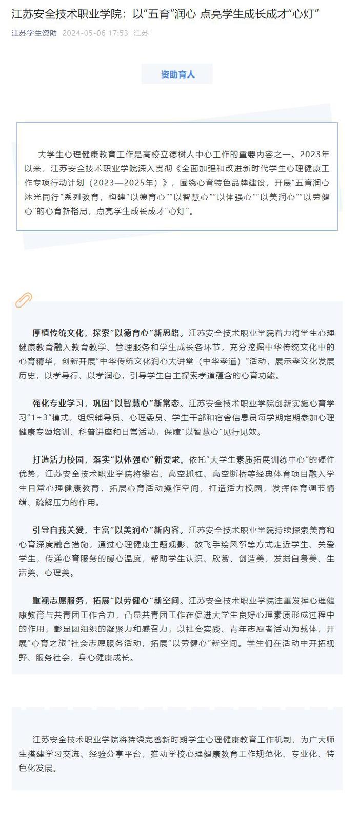 江苏学生资助:江苏安全技术职业学院:以“五育”润心 点亮学生成长成才“心灯”
