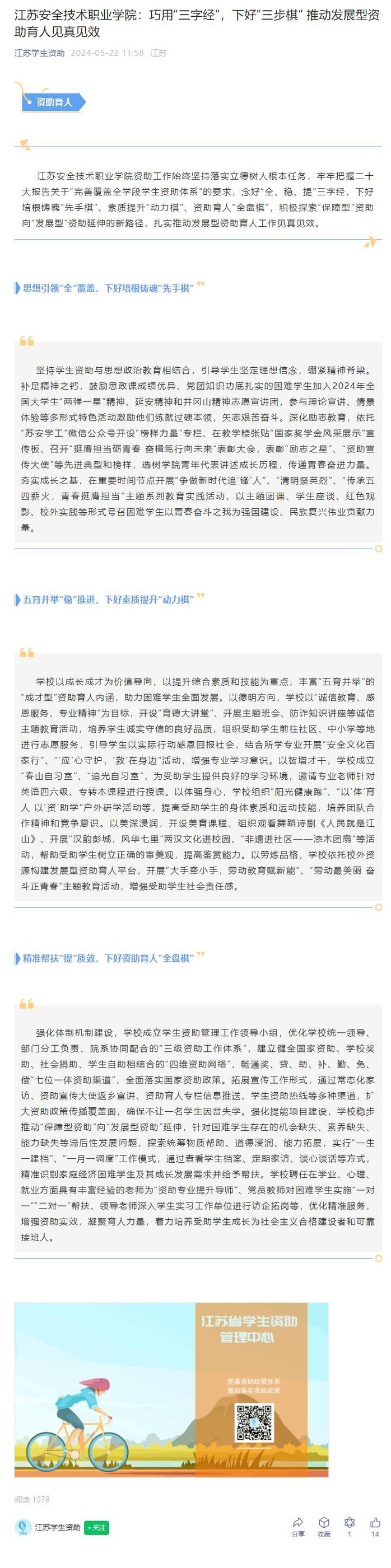 江苏学生资助:江苏安全技术职业学院:巧用“三字经”,下好“三步棋” 推动发展型资助育人见真见效