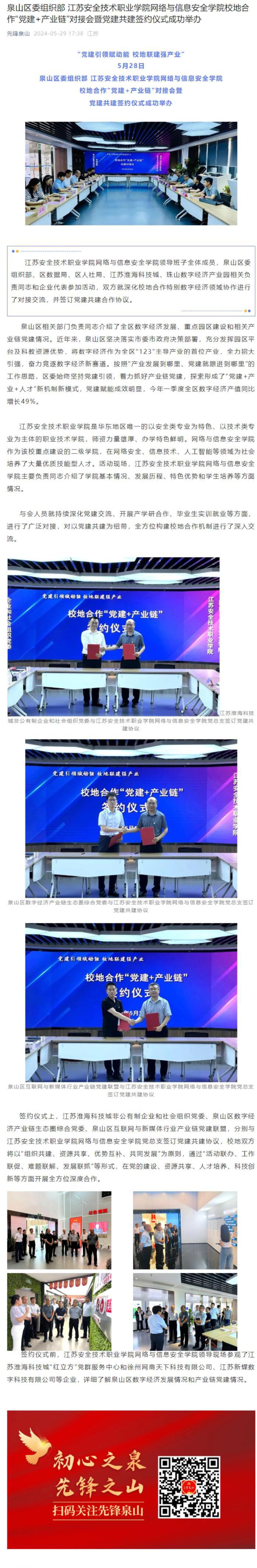 先锋泉山:泉山区委组织部 江苏安全技术职业学院网络与信息安全学院校地合作“党建+产业链”对接会暨党建共建签约仪式成功举办