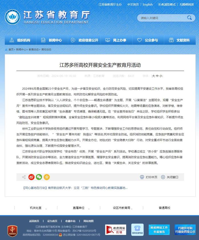 省教育厅:江苏多所高校开展安全生产教育月活动