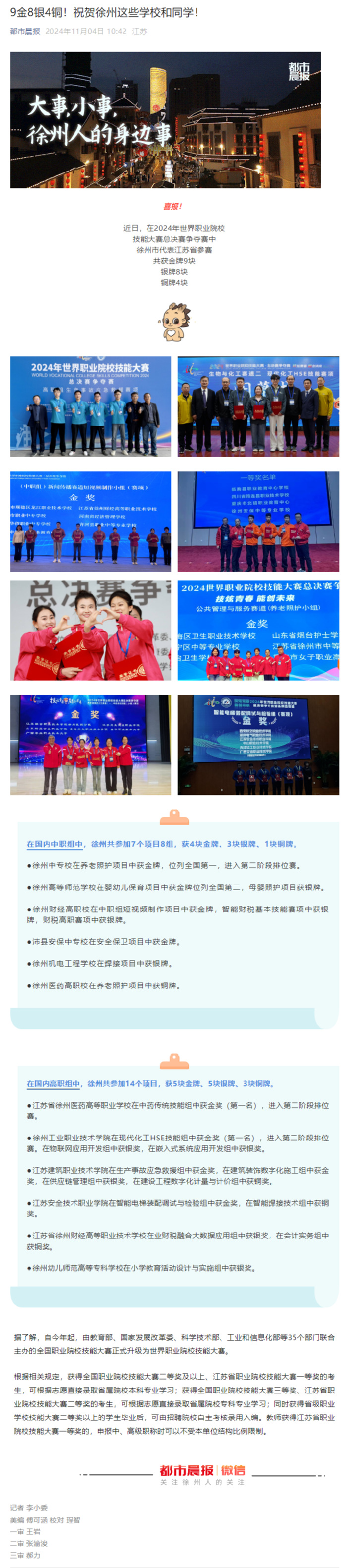 都市晨报:9金8银4铜!祝贺徐州这些学校和同学!
