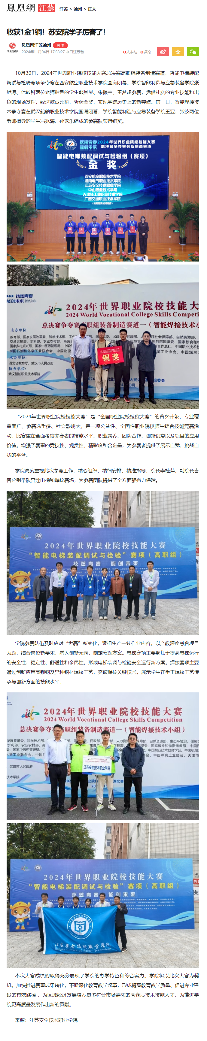 凤凰网江苏:收获1金1铜!苏安院学子厉害了!