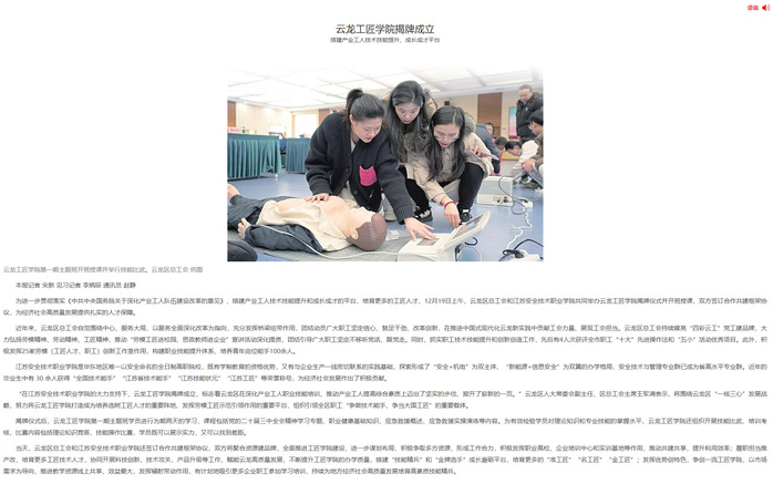 徐州日报:云龙工匠学院揭牌成立 搭建产业工人技术技能提升、成长成才平台