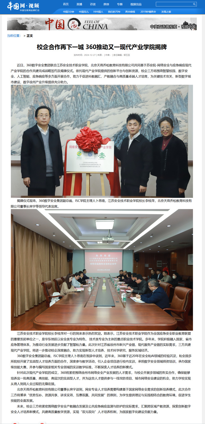 中国网:校企合作再下一城 360推动又一现代产业学院揭牌